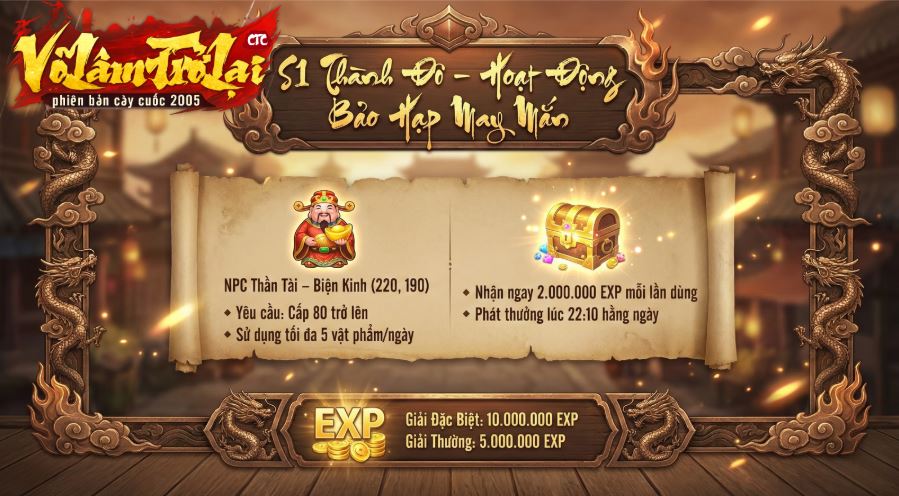 🌊 HOẠT ĐỘNG PHONG LĂNG ĐỘ – GIANG HỒ DẬY SÓNG S1 THÀNH ĐÔ – CHIẾN TRƯỜNG THUỶ TẶC KHÔNG KHOAN NHƯỢNG Phong Lăng Độ – nơi sóng dữ cuộn trào, thủy tặc hoành hành, anh hùng tứ phương hội tụ.Hoạt động kinh điển mang đậm hơi thở VLTK 2005, nơi vừa làm nhiệm vụ […]